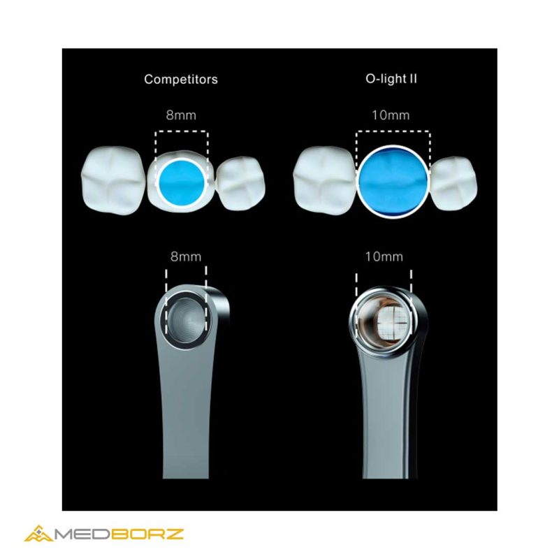 - مجهز به طول موج ۳۸۵ تا ۵۱۵ نانومتر که با تمامی مواد ترمیمی کامپوزیتی سازگاری دارد.
